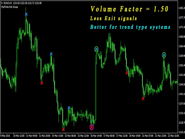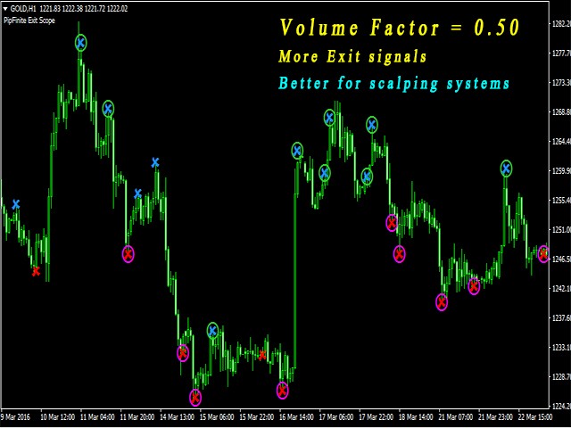 - Decreased Volume Factor = 0.50 to 1.30 . This will generate more exit signals