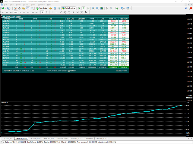 - pairs, number of trades, lot size, profit, lose, nett p/l, net pips