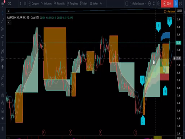 The Roller Coaster is a Stochastic MACD Cross with Special EMA Points of Control for both Long and Short Trades.