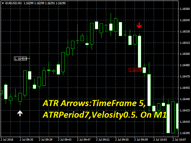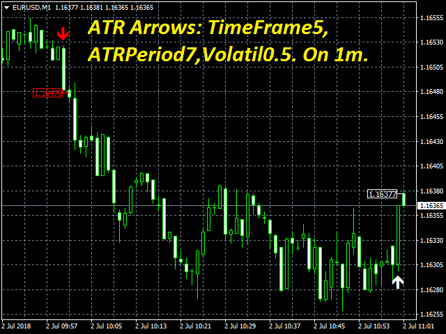 The ATR Arrows MTF indicator is built based on the Average True Range (ATR). It provides entry signals as arrows. All signals are generated at the current bar.