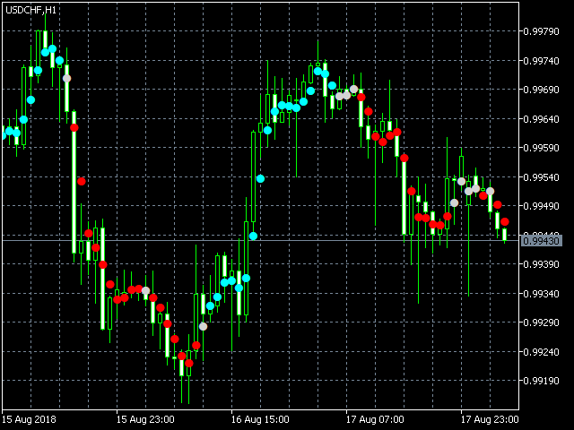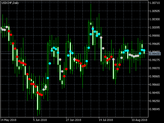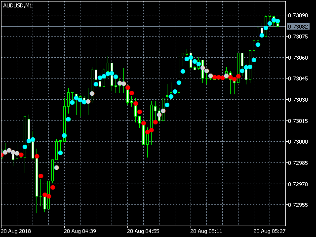The Quantum Trends indicator paints a series of dots on the price chart as follows: