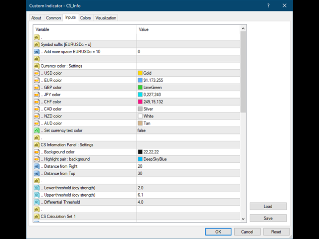 - CS Calculation Set 1-4 : Settings [These settings can be changed directly on chart]