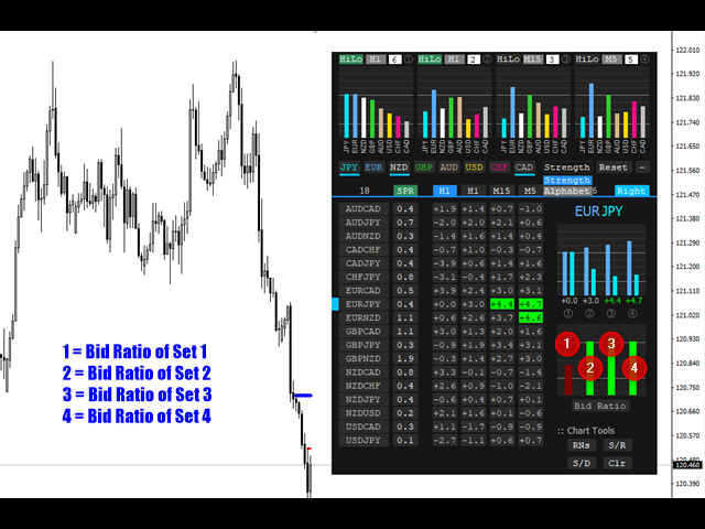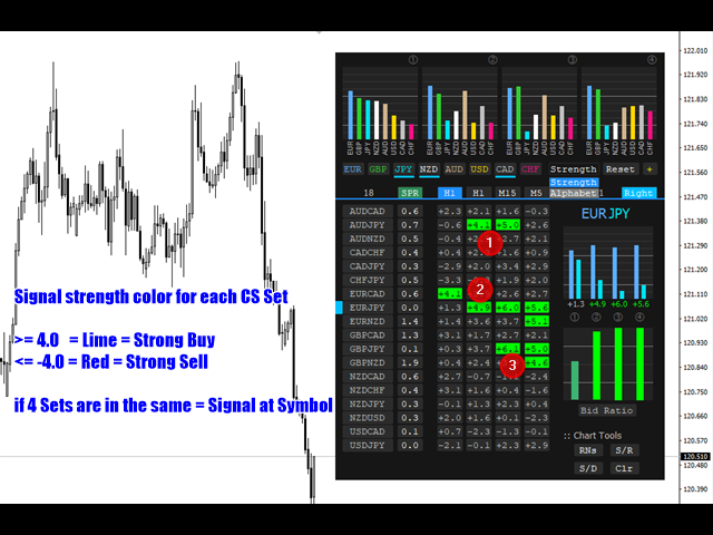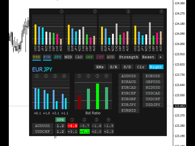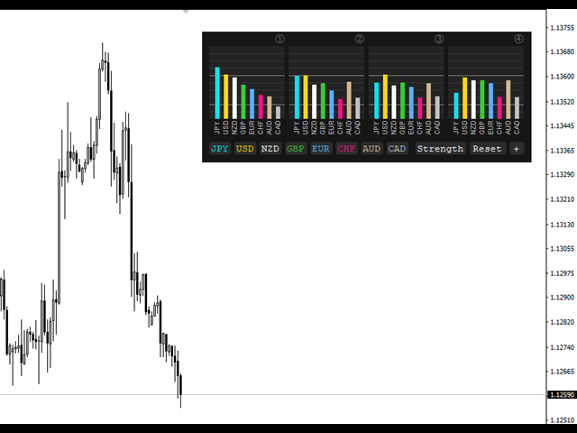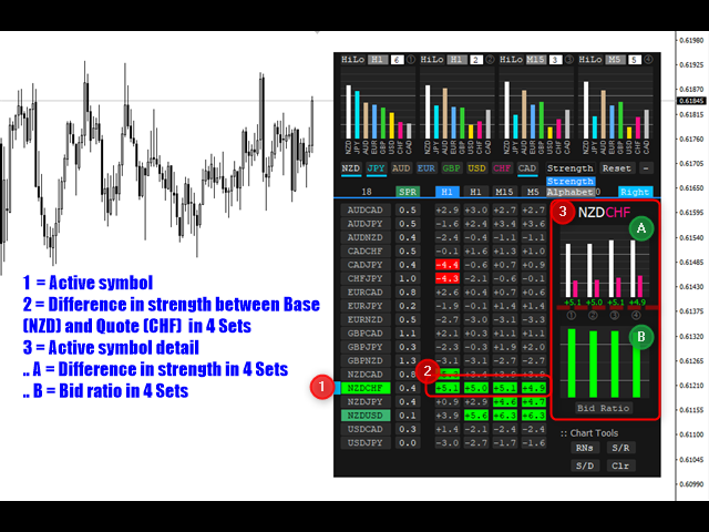 - On right, only strength of Base currency and Quote currency will be shown to compare 4 sets.