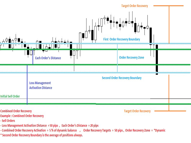 • ENABLE Combined Order Recovery : If enabled, negative management is switched from the Loss Management to the Order Recovery system when the open loss reaches a percentage of balance.