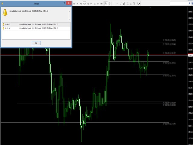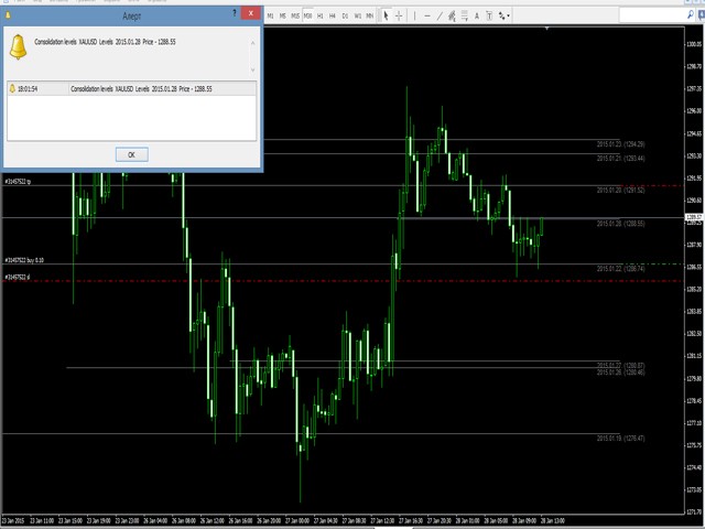 The Consolidation Levels indicator is a professional tool which identifies these sections and builds levels according to the price of the market at the moment of consolidation. And these levels represent significant support and resistance levels.