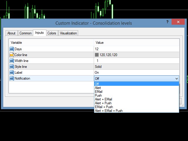 The indicator is designed for intraday trading. Chart period is from 15 minutes to 4 hours. The indicator notifies when the price touches lines. It also has a pop-up Alert window, sends notifications to Email, and makes Push-notifications (Android and iOS smartphones).