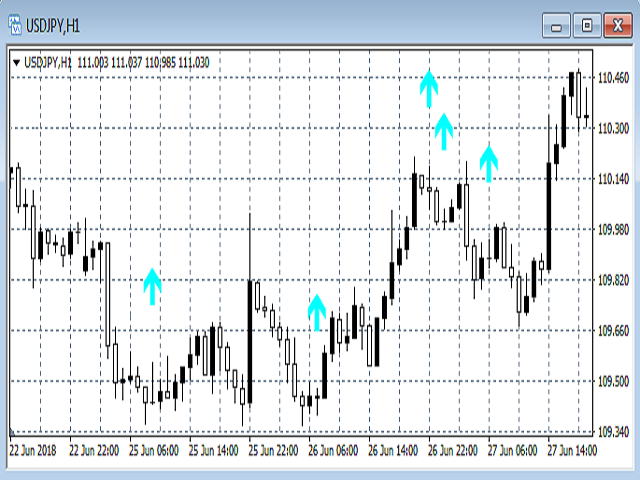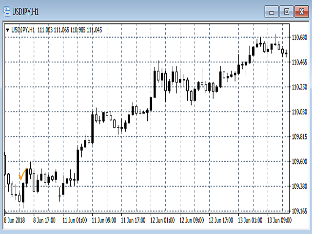 It enables to get the same functions with the engulfing patterns: it could precisely indicate with a graphical object and sign on the chart the positions of new engulfing patterns.