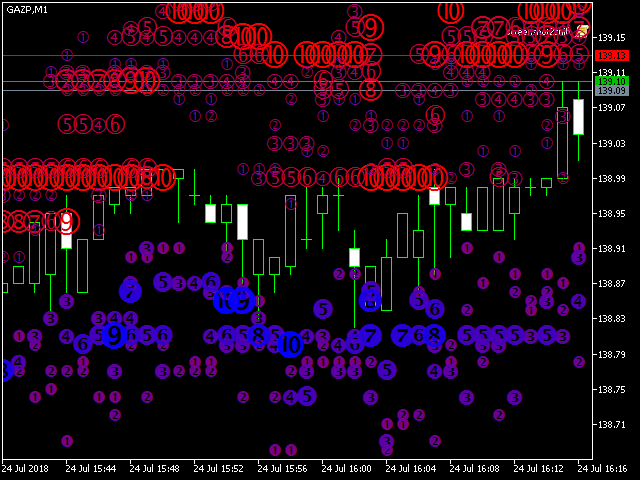 • ShowHistory - an option to enable market book view on the history, based on the archive; by default, false - disabled, that is the indicator collects and displays online data;