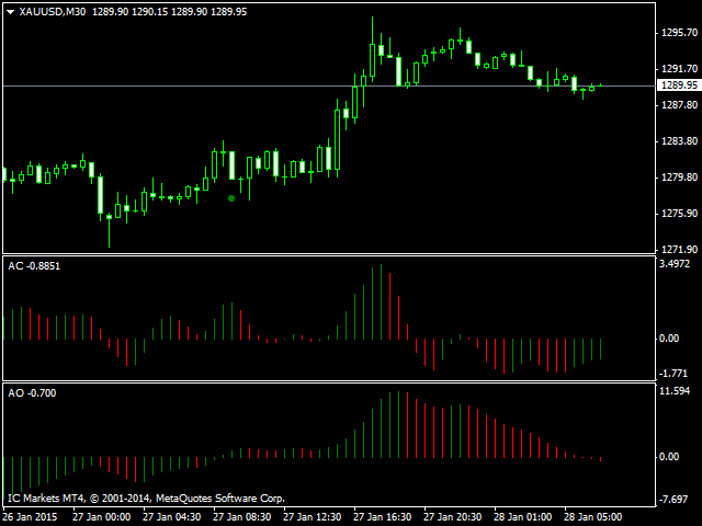 AO, AC or AO+AC if signals of two indicators coincide. The indicator shows an Alert message (pop-up window) when a signal appears.