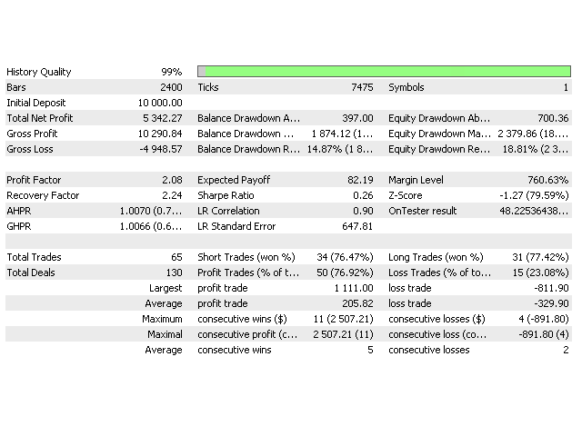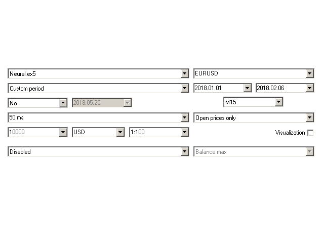 It should be noted that testing is quite complex. Since it is quite time-costly, if the neural network is retrained every hour. In practice, it is only possible to test it to a certain approximation and to see the general operation principles. Therefore, the default settings in the robot are provided only for demonstration. The settings recommended for live trading are also provided. The difference is that the neural network takes a large history sample for live operation and learns much more accurately (and therefore longer). This takes a lot of time, and certain limits are present when testing. For live trading, however, everything is simpler, as there is enough time for hourly optimization. With the medium (recommended) parameters of the neural network and sample length, training takes 5-15 minutes. In this case, the learning speed depends on the CPU power. The robot can be run on any chart with the recommended parameters. Also, if the CPU is powerful enough and when working on timeframes higher than M5, the neural network complexity and the history sample can be increased. Increasing the complexity of the system only improves predictability.