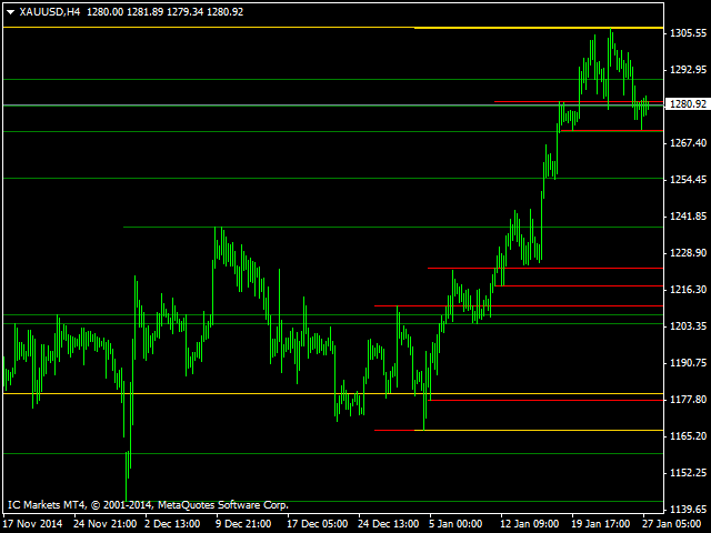 The indicator makes levels according to local maximums and minimums of a week, a month, or a year.