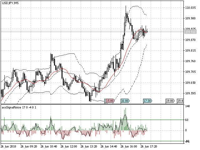 The Signal Noise Indicator is a non-parameterized oscillator generated by high, low and close noises.