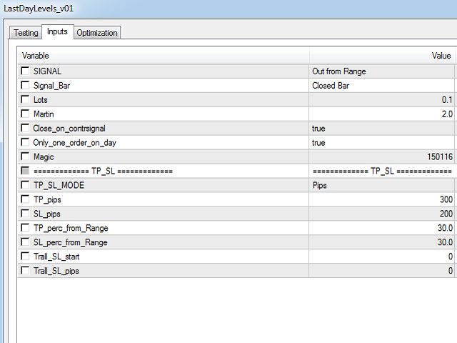 • Martin - lot increase ratio after a losing trade. To disable this feature, set it to 1 (one).