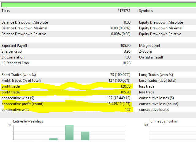 Attention! The default input values are already optimized for EURUSD at time frame M6 , spread 15 and Netted account mode . Always use the strategy tester optimization to set the best values for your assets, time frame, spread and account mode. It is very important and strongly recommended for successful trading. Optimize the input values as you need.