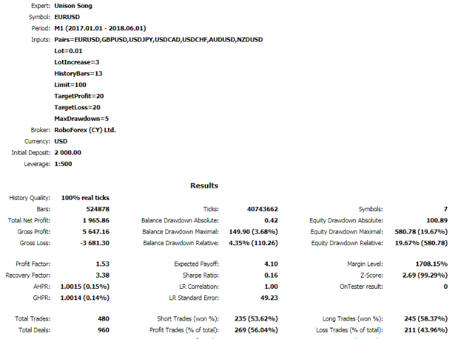 - Limit - the higher the value, the smaller the number of trades and the smaller the probability of a large drawdown.