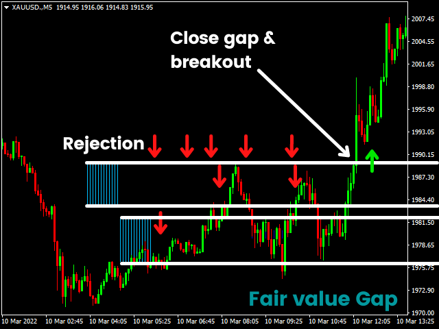 Fair value gap Indicator MT4 is the most accurate and customizable indicator on the market. It was developed to facilitate the analysis of operations based on candlestick patterns and supply-demand zones. These zones are possible movement reversal points. For this indicator is generated by the order block of smart money concept.