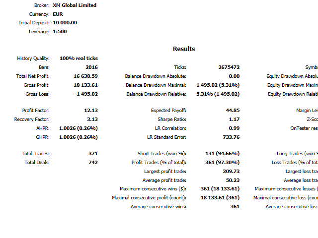 Attention! The default input values are already optimized for EURUSD at time frame M15, spread 15 and Hedging account mode . Always use the strategy tester optimization to set the best values for your assets, time frame, spread and account mode. It is very important and strongly recommended for successful trading. Optimize the input values as your needs.