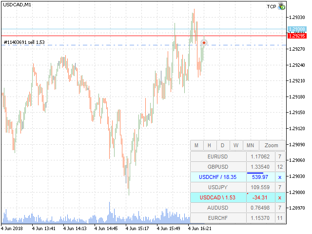 TCP - Trader Control Panel is an extension to build into MetaTrader 5 manual methods to control open positions. It adds opening and closing position feature as well as user-friendly monitoring dashboard, money and risk management when opening. Opening and closing positions are done by mouse by interactively placing stop loss line on appropriate level or by pressing predefined keys on keyboard. Before opening a new position, the EA calculates such lot size, which will guarantee you no more losses on stop loss line, than you previously set in EA's parameters. You may set this risk controlling values in % of your deposit or as a fixed money amount in deposit currency.