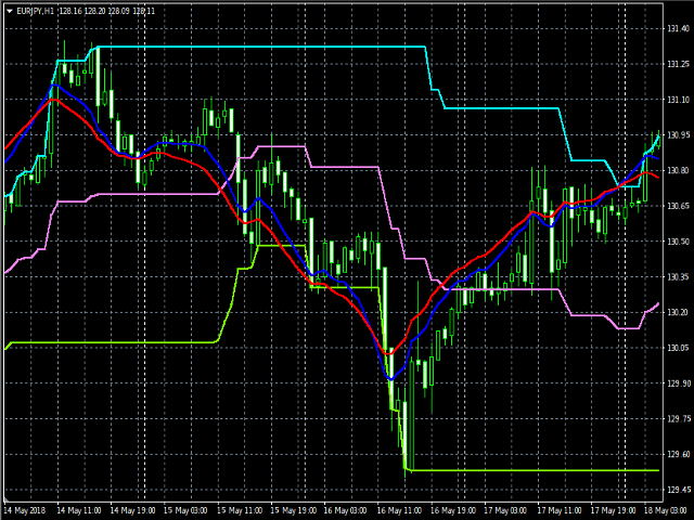 The indicator shows the upper, middle and lower price limits for a certain period of time.