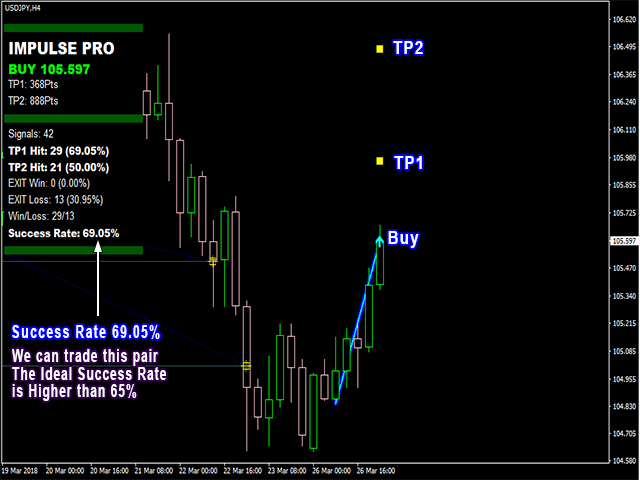 - Enter a signal if Statistics Success Rate is higher than 65% (Statistics Success Rate > 65%).