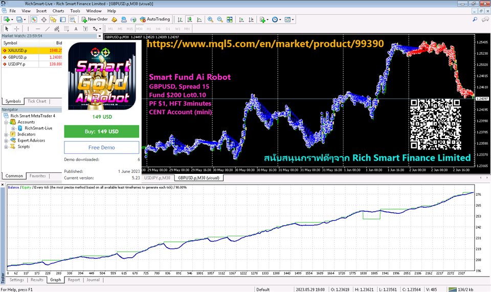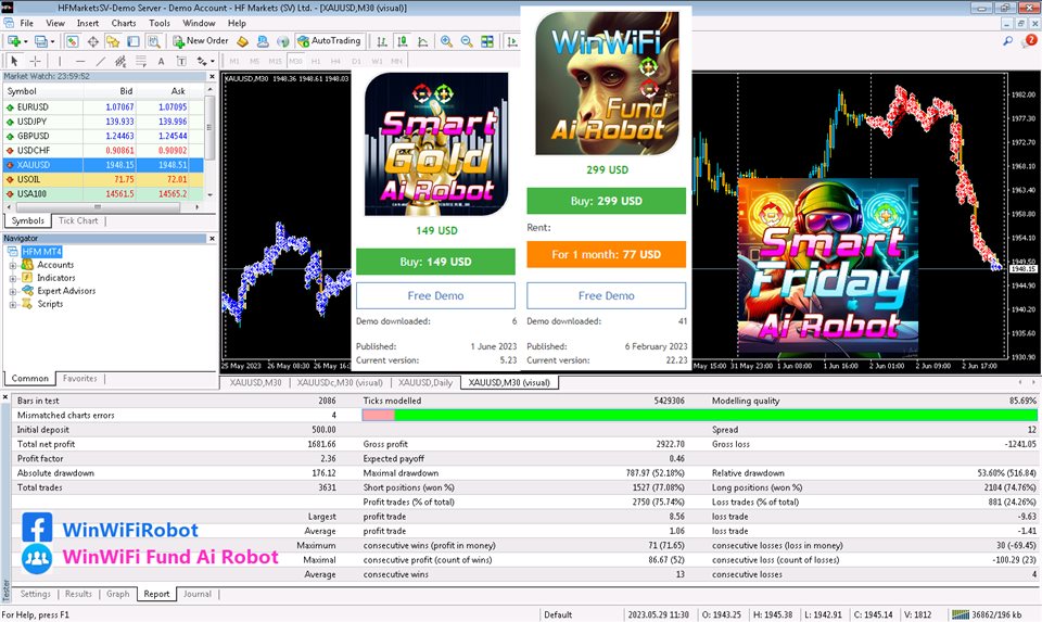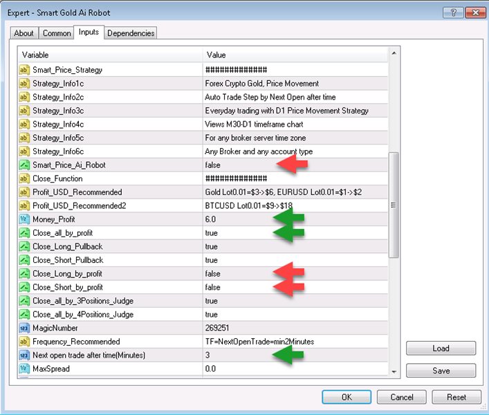 Strategies inside Work for XAUUSD and any Assets Chart of any brokers 1.Smart Gold Strategy Automatic trend and sideway trading, You can views M30-D1 timeframe chart, Day Trade, No Martingale. Apply to switch the days of the week, Mon-Wed-Fri, Tue-Thu, Everyday, For any broker server time zone and any account type 2.Smart Crypto SW Strategy D1 Price Movement, views D1 Timeframe chart 3.Smart Price Strategy Automatic trend and sideway trading, You can views M30-D1 timeframe chart, Day Trade, No Martingale. Apply to switch the days of the week, Mon-Wed-Fri, Tue-Thu, Everyday, For any broker server time zone and any account type 4.Smart Friday Ai Robot Friday Trading with D1 Price Movement and Price Action, You can views M30-D1 timeframe chart, Day Trade, No Martingale. 5.Smart Fund Ai Robot FX Everyday Trading with D1 Price Movement and Price Action, You can views M30-D1 timeframe chart, No Martingale.