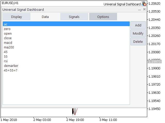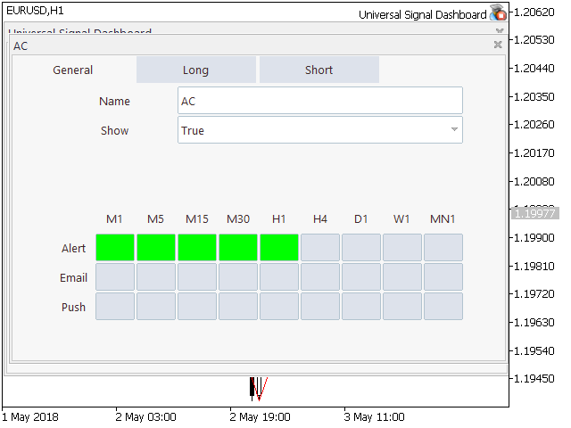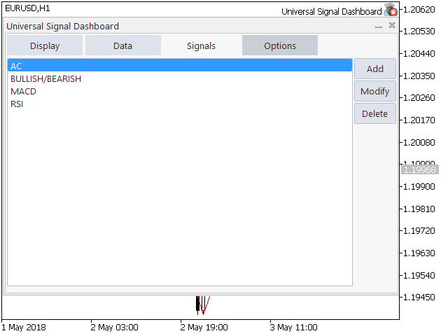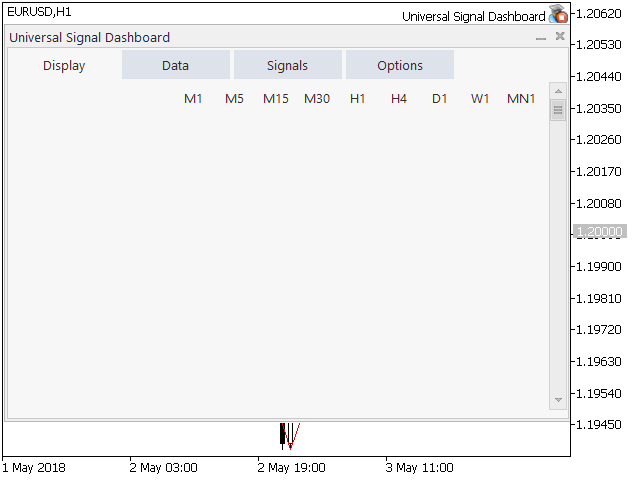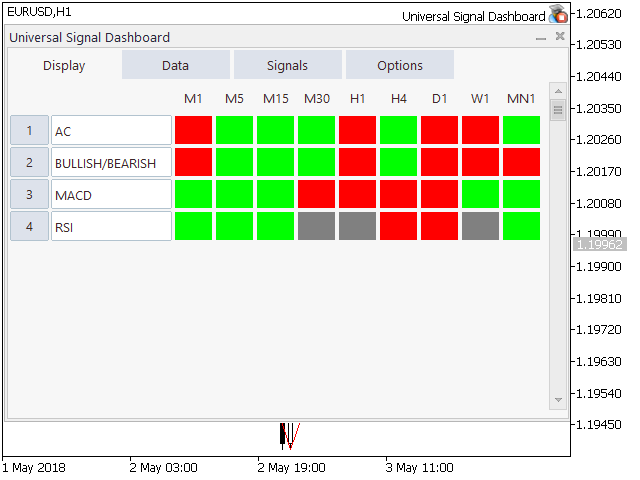 The Universal Signal Dashboard (USD) is a signal dashboard or indicator matrix. It can generate a matrix of signals from values, chart and candle prices, and from the buffer output of almost any technical indicator. However, unlike most dashboards of the same category, USD is configurable based on the inputs provided by the user within the app interface.