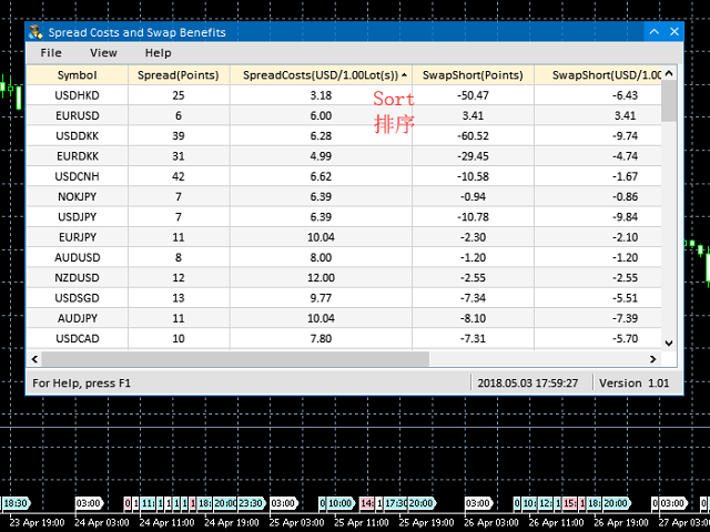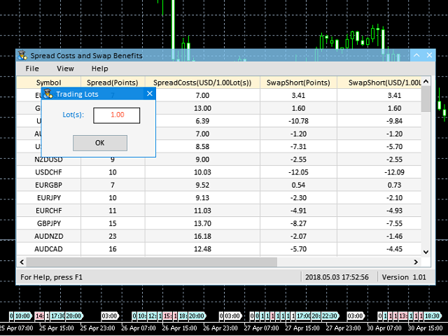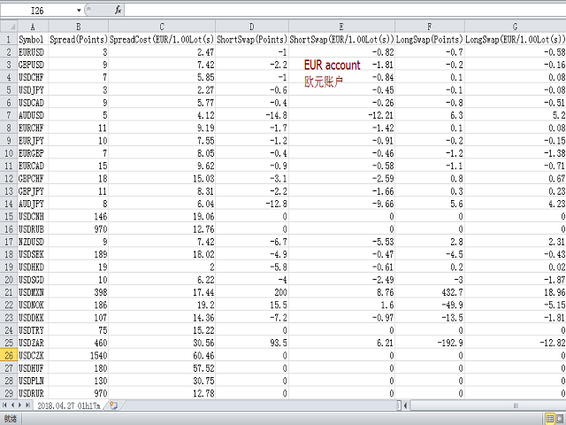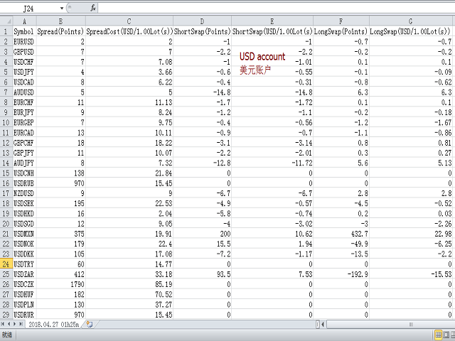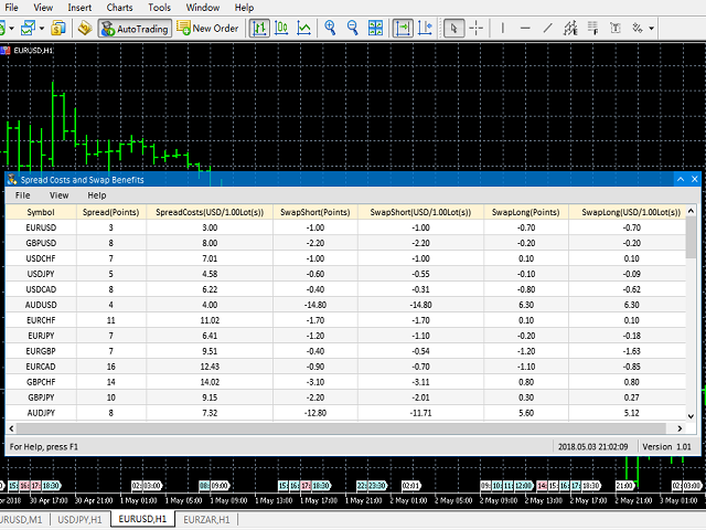 点差成本 是指交易中由点差造成的损失金额, 隔夜息收益 是指隔夜持仓获得的收益金额。 点差成本 对于短线交易者尤其是超短线交易者来说是一个重要的指标, 隔夜息收益 则对长线交易者来说是一个很重要的指标。由于MT5平台中得到的点差及隔夜息都是以点表示的,我们需要将它转换成以账户货币计价的金额 。本工具可以在不同的账户类型(美元账户、欧元账户等等)下,通过面板表格展示平台报价中所有外汇货币对(包括黄金XAU、白银XAG)的 点差成本 及 隔夜息收益 。面板表格中所有的数据都是实时更新的。