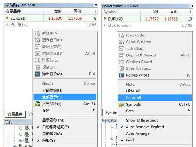 - 使用此工具前需将MT5的市场报价设置为“显示全部”,具体操作见下图;
