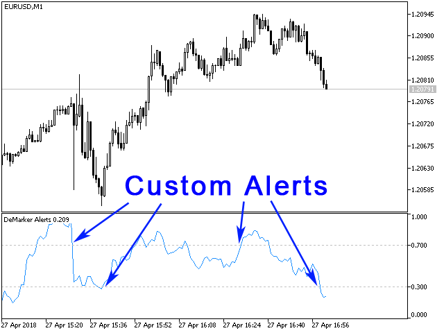 If you don't know the benefits of DeMarker or how to use it, please read here . If you need signals of a more popular RSI indicator, use RSI Alerts . If you need the version for MetaTrader 4, see DeMarker Alerts .