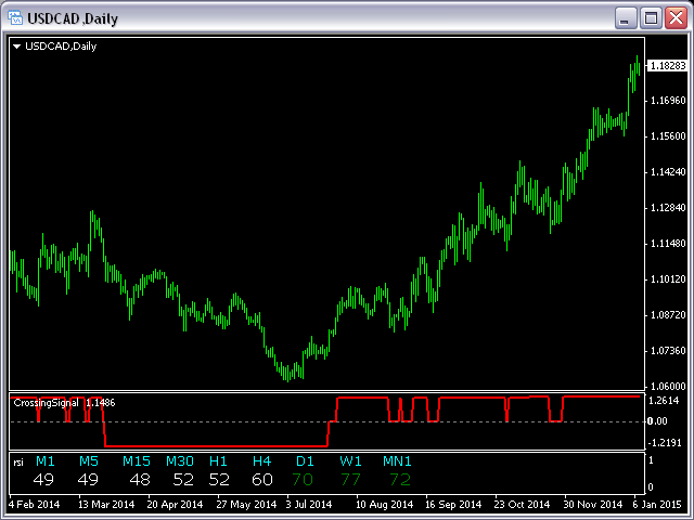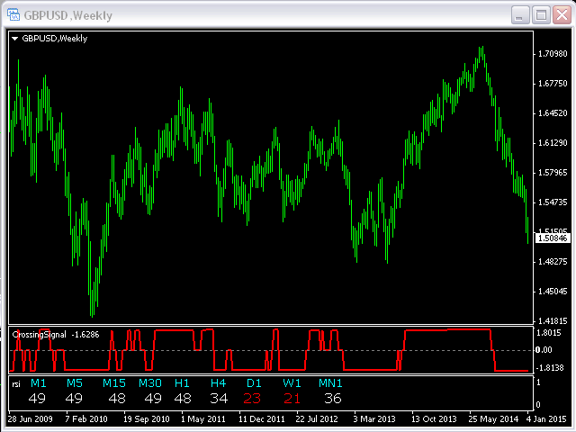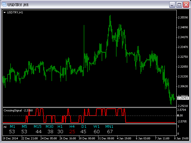 This indicator is based on the classical indicator RSI (Relative Strangth Index) and will be helpful for those who love and know how to use not a visual but digital representation of the indicator. All TimeFrames RSI MT4 indicator shows values from each timeframe.
