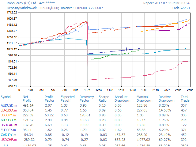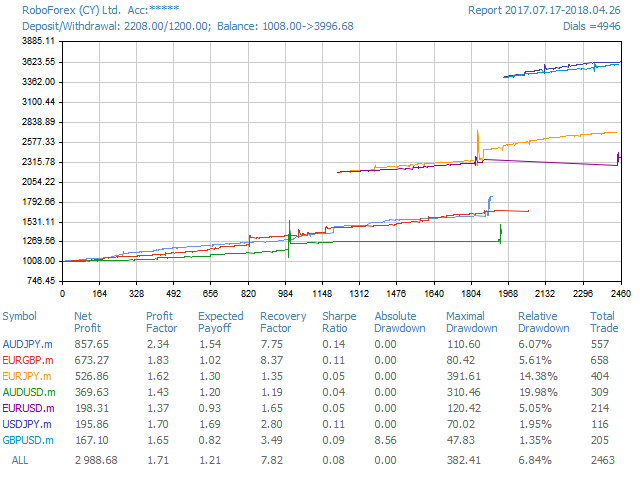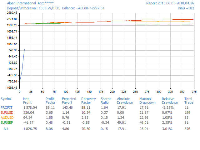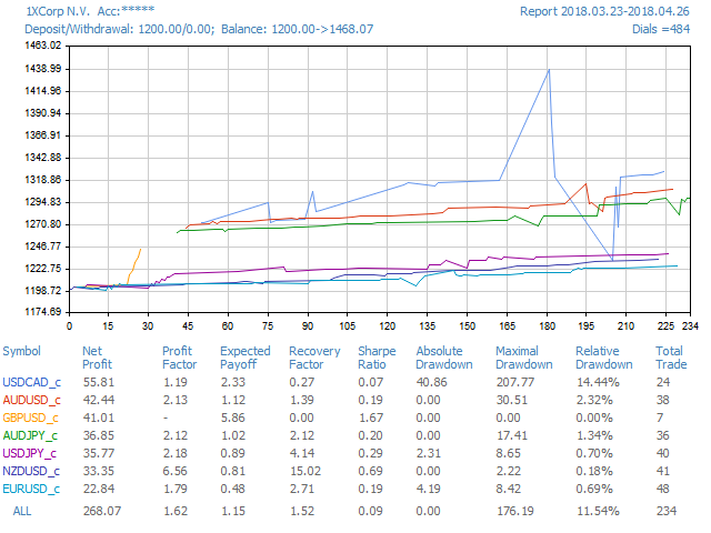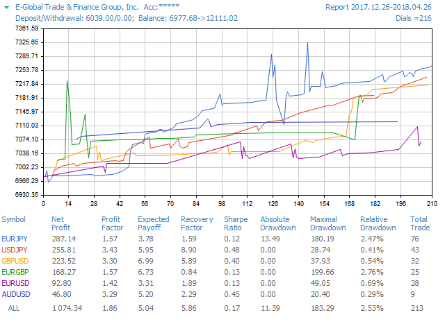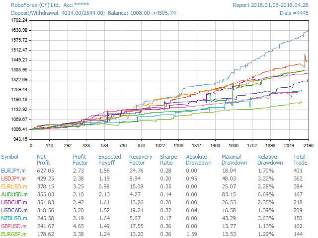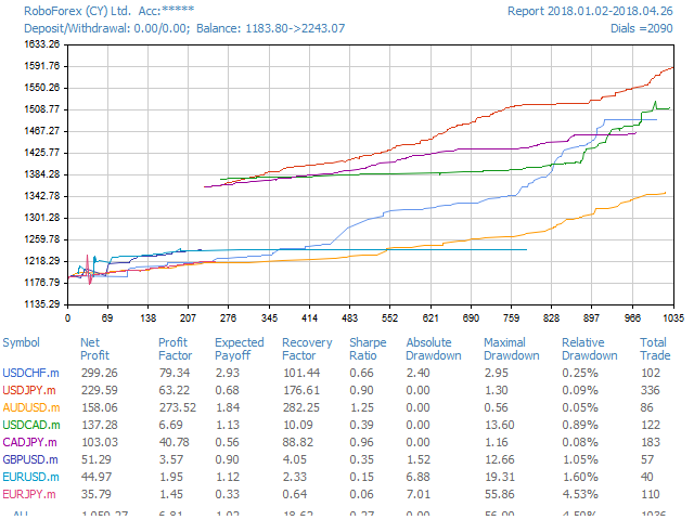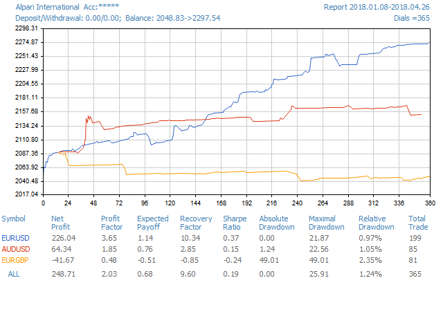 The report visualizes the changes in the balance for deals on each symbol. Also, the following key trading parameters are calculated for each instrument: