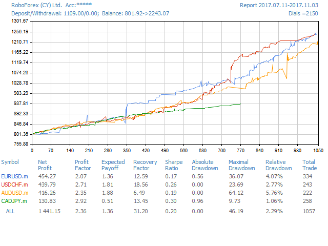 The Quick trade report separately by symbols script will be useful for simultaneous trading on multiple instruments. It provides the ability to assess the effectiveness of trading on each symbol separately. It is possible to set a time period for making the reports.