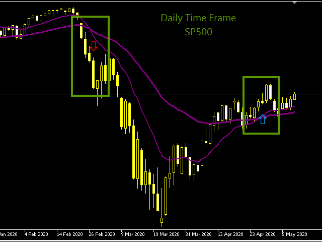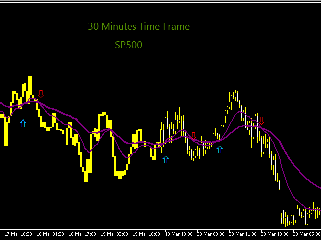 The indicator paints up / down arrows on the selected chart in both Forex and other CFDs, in any timeframe.