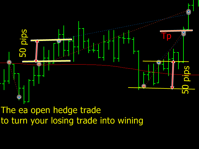 - The EA opens hedge trades when your original trade reaches a certain predetermined loss point.