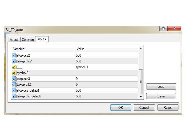 If a new order is not in symbol1 , symbol2 or symbol3 , the EA will use stoploss_default and takeprofit_default values to put SL and TP.