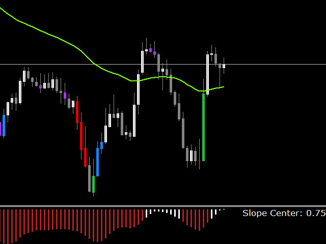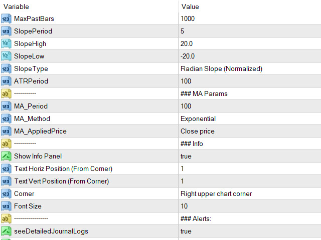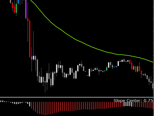 The slope value is calculated using the Slope Period. Suppose Period is 5, it will check the MA value for bar (x) and bar (x+5).
