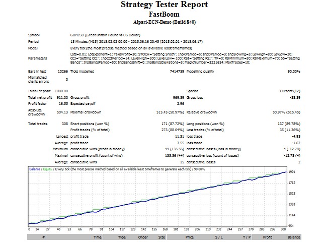 The FastBoom EA finds the most probable points of price pullback/reverse and places an order. It places averaging orders if the price moves further against take profit.