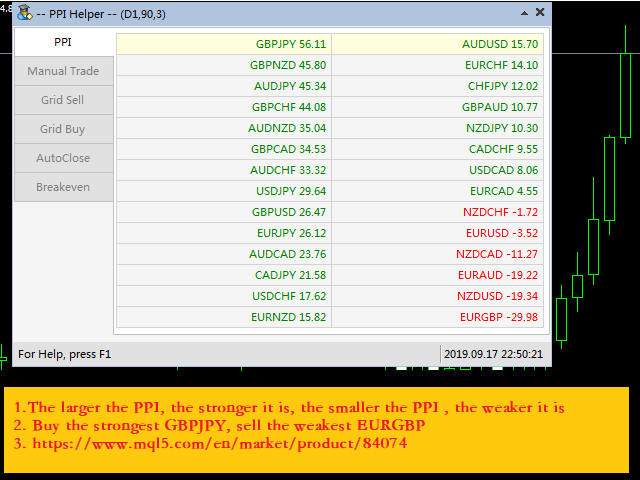 - PPI -- 提供了28个主要外汇品种的强弱关系,排序。 术语" PPI " 是 " Pair Power Index " 简称,是货币对强弱指数的意思。 点击品种可以快速切换图表。