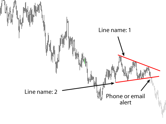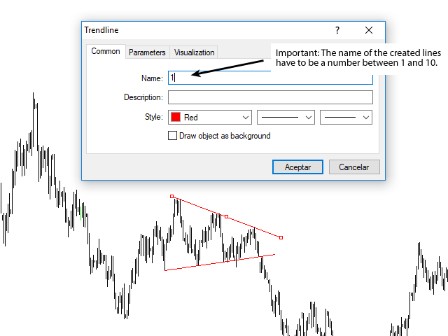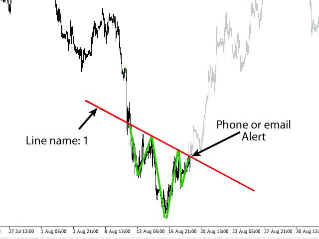 - Draw a line using the "Trend Line" command of the Metatrader 4 platform.