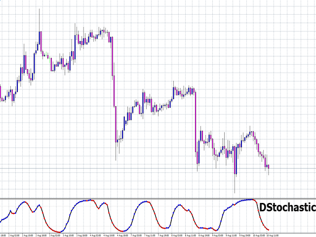 DStochastic is an improved version of the classic Stochastic oscillator with an added moving average. The indicator dampens the market noise, determines the direction of the market and reduces the number of false signals.