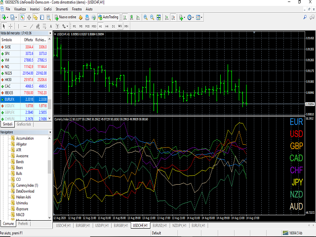 The Currency Index Project is Forex study. Many people do not know the theoretical basis that drives currency exchange rates to move on the market. With this set of tools you will be able to have a more complete view of the entire market by analyzing not only the single currency of an exchange, but all the exchange rates that make up that currency by looking at a single window!