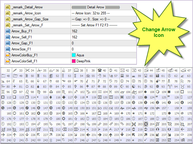 DETAIL ARROW: Refine the arrow details in the display. Change Arrow: Icon, Gap, Size and Color(*****Arrow Signals: Non repaint, Non redraw, Non re-calculate*****)