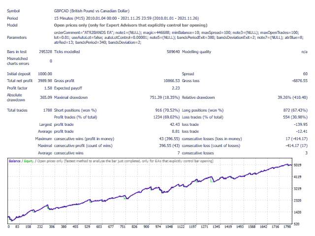 Expert Advisor uses 2 ATR indicators and Bands for Enter trades.