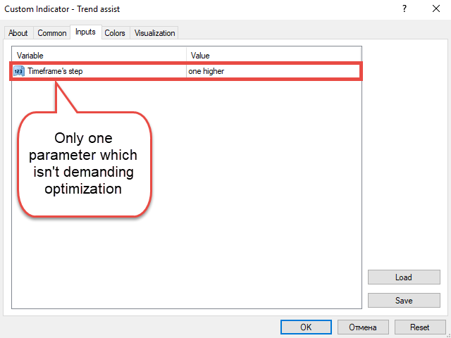 • Timeframe's step - timeframe for the second indicator line (it can be current, one or two timeframes higher than the current one)