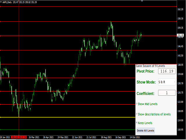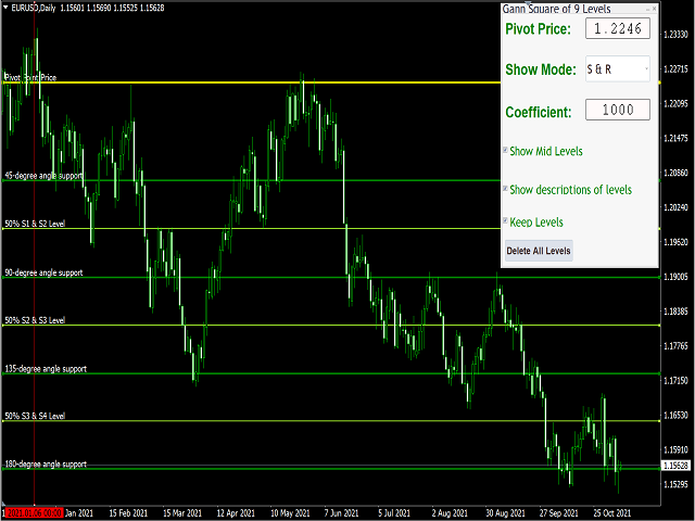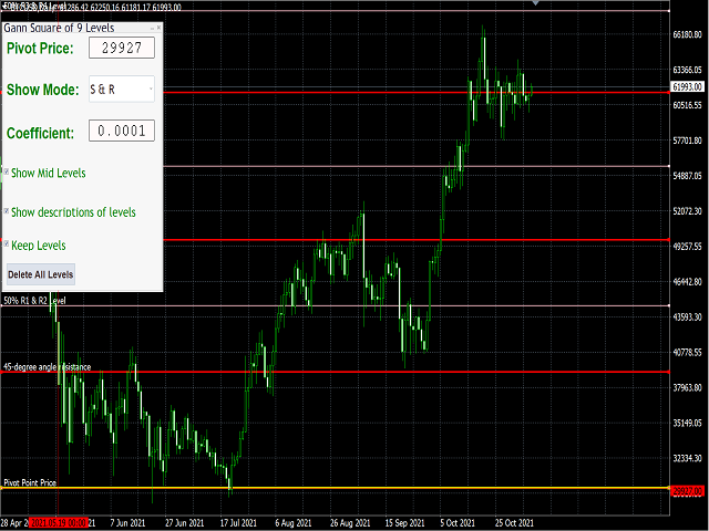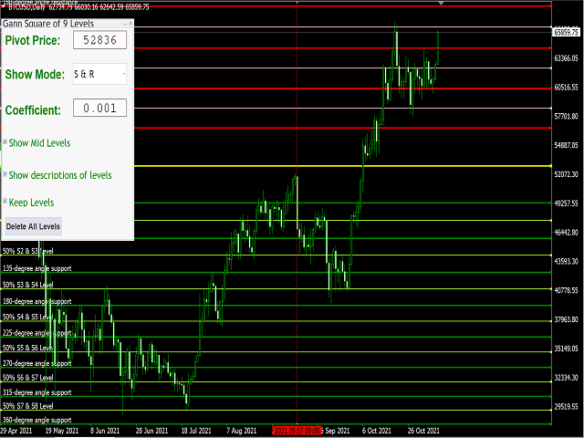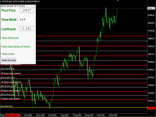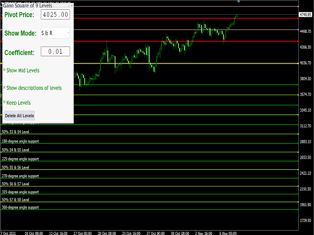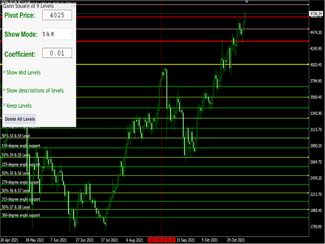 This indicator is designed based on Mr. WD Gann's square of nine methods.