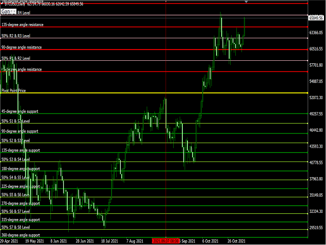 Using this indicator, we can enter the desired pivot price and, based on the coefficient we assign to it, extract 8 support and resistance numbers with 8 angles of 45, 90, 135, 180, 225, 270, 315, and 360.