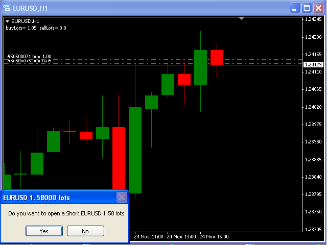 This script searches for all positions for the current currency pair and calculates the sum of all lots for those positions with negative profit and offers to open a hedge (opposite) position with a lot size equal to the calculated sum of lots multiplied by LotCoeff.
