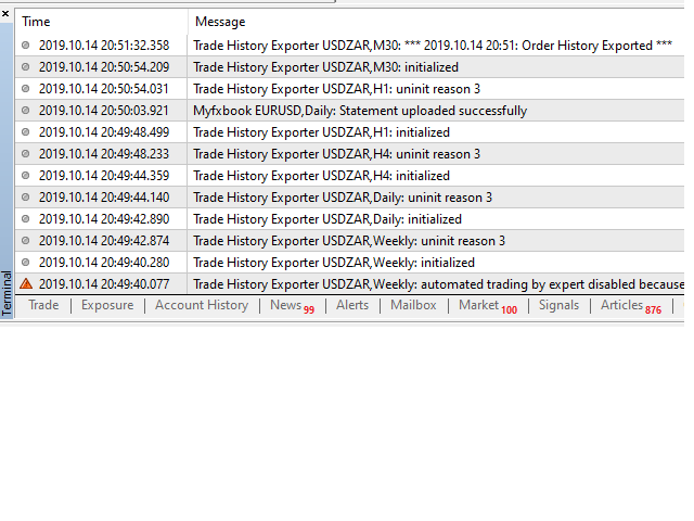 Trade History Exporter automatically exports trade history to a CSV (comma separated values) file.
