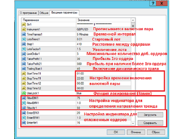 The operating principle of this EA is the Breakdown/Rollback of support levels in the direction of the trend.