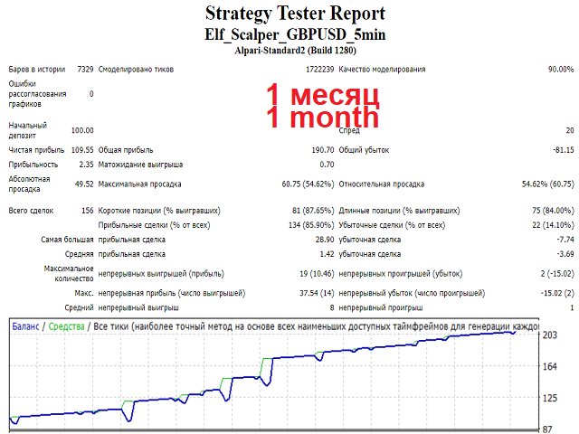 Attention! For those who bought the EA, the Elf scalping indicator is a gift ! With it, you can easily select parameters for any pair and time interval, and you can more accurately configure trading from "Safe" to "Aggressive" based on your balance. To get an expert Advisor, contact me.